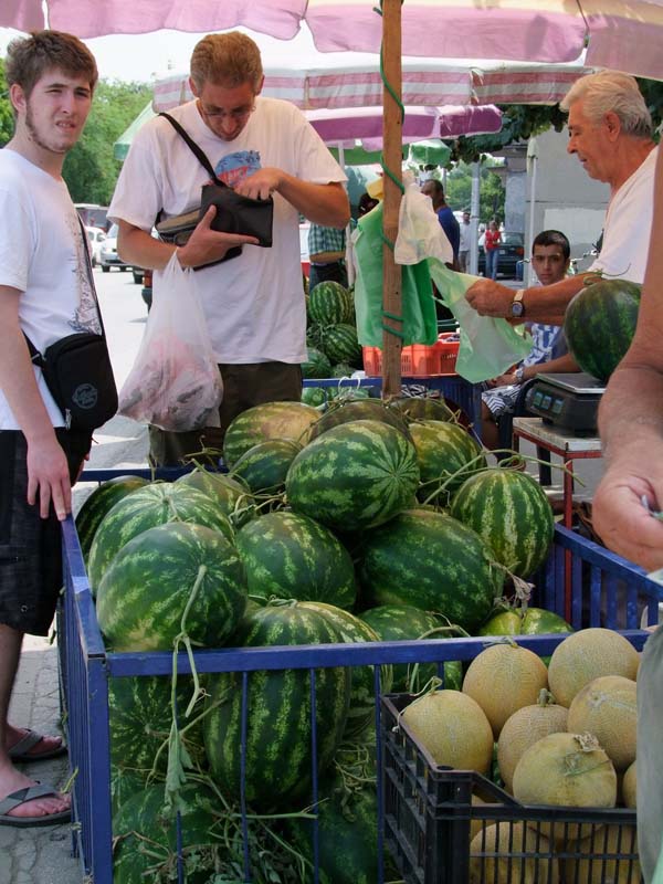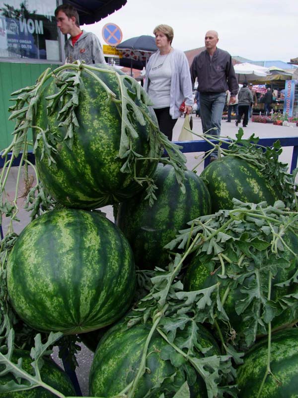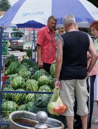 paradajzom, krastavcima i krompirom, kao i sezonskim voćem i bostanom,