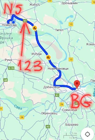 Auto put Novi Sad Beograd sa desne strane "123km"
