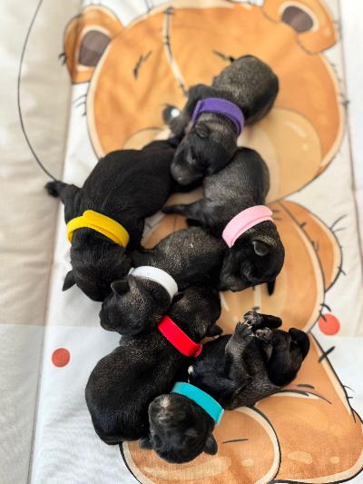 Predstavljamo leglo crnih standardnih (kraljevskih) pudli od roditelja svetske klase. Oštenjeni 15.08.2025., ovi mladi psi su idealan spoj genetike, inteligencije i izložbenog potencijala.
