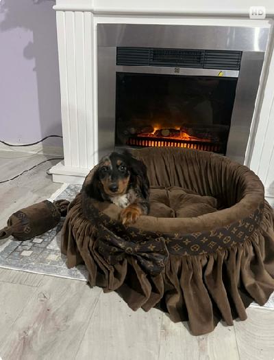 Patuljasti dugodlaki jazavičar, merle ženka stara 9 nedelja, tri puta očišćena od parazita, primila dve vakcine, izuzetnog temperamenta. Uz štene ide čip, pasoš, klinički pregled kod veterinara, početni paket granula, pedigre.