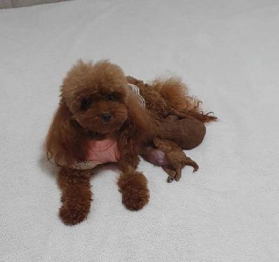 Majka toy crvena pudla, takođe veoma sitne gradje, visine u grebenu 25cm.