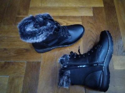 Prodajem potpuno nove, poluduboke čizme/cipele,veličine 41,brenda Comfort by lusso.Obuća je sa neklizajućim anatomskim đonom i postavljena krznom,idealna za zimu.Crne boje sa krznom,dužina spoljašnjeg gazišta 29,3 cm,na pertlanje,a sa unutrašnje strane je rajsferšlus,za lakše obuvanje.Idealna za široka stopala ,sa visokim risom.Može i lično preuzimanje u Jagodini